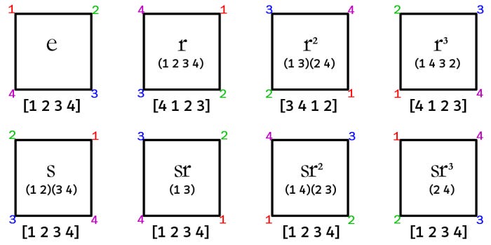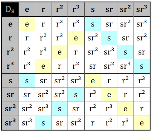 D₈ "square" = {e, r, r², r³, s, s⋅r, s⋅r², s⋅r³}