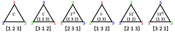 Six cosets of H: the elements of D₆