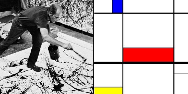 A word also about the difference between random and simple. We tend to link random with complex and thus simple with nonrandom. But be careful. A single coin flip is random (or at least random-ish). My attempt at a Mondrian above is pretty simple but also pretty random. It compresses to 0.45% of its original size (from 1,364,230 bytes to a mere 6,101 bytes) whereas a same-sized image from a Jackson Pollock painting compresses to only 95.70% (a whopping 1,305,560 bytes) — hardly any compression at all.