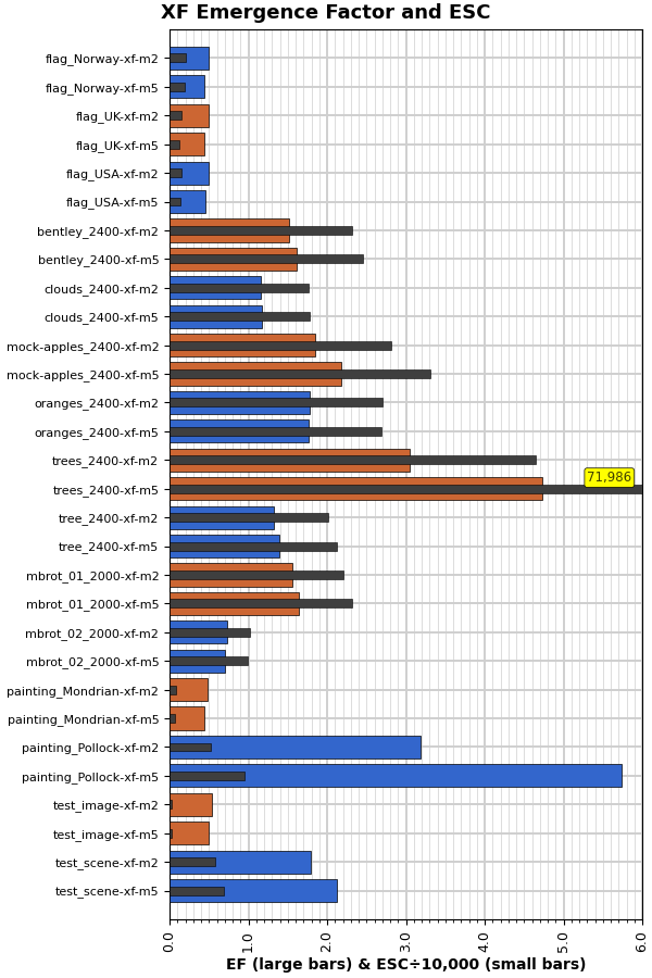Rather than show you all the graphs for all the images, here’s a chart showing the Emergence Factor (EF, which comes directly from the compression curves shown above) as well as the ESC value:5
